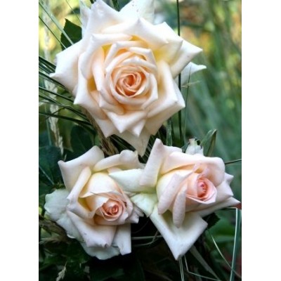 Цветки розы имеют кремово-абрикосовый оттенок с более светлой изнанкой лепестков, что делает их особенно привлекательными. Основной цвет варьируется от кремового до персикового, а насыщенность оттенка бледная.
